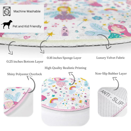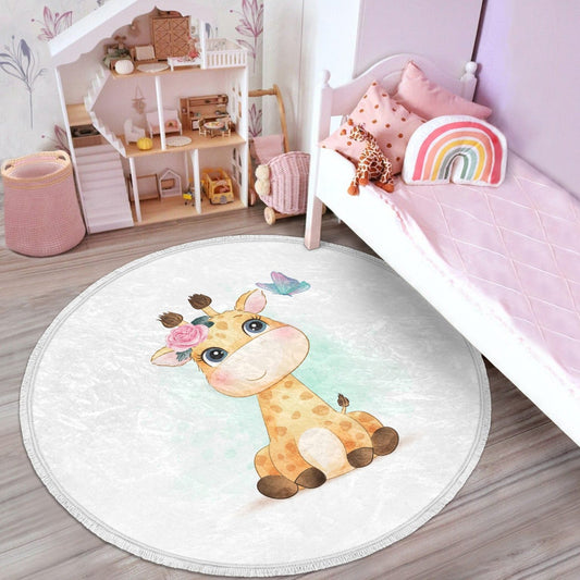 Cute Nursery Room Round Rug, Decorative Kids Room Nonslip Carpet,