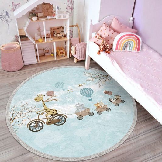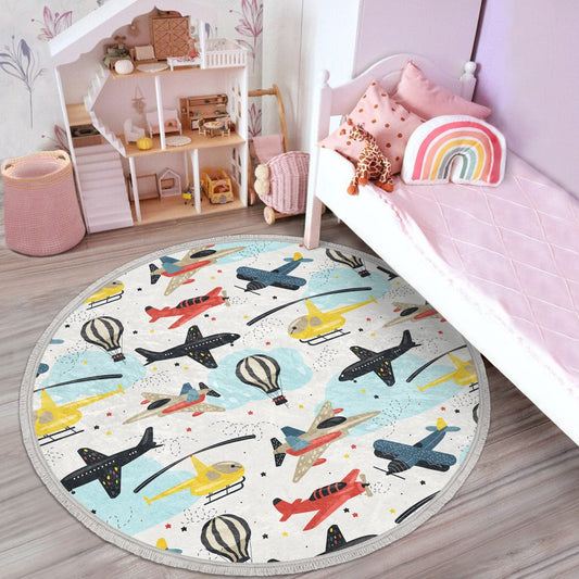 Kids Room Plane Round Rug, Nursery Round Rug, Baby Room Decorative