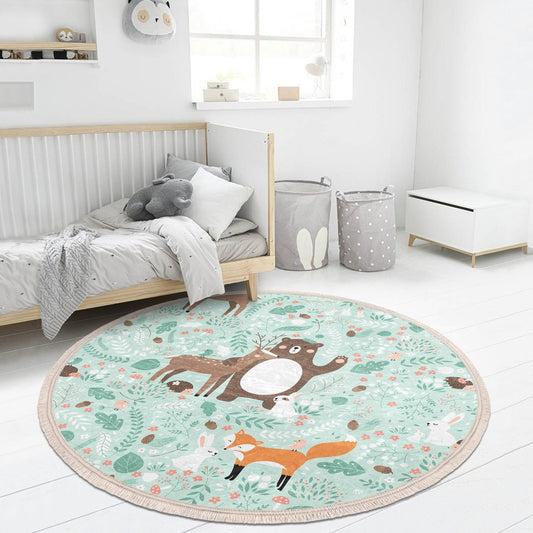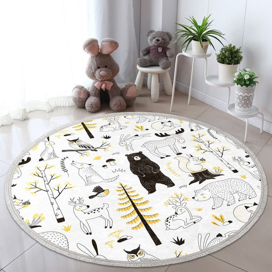 Bear and Deer Printed Kids Room Decorative Round Rugs, Nursery Room