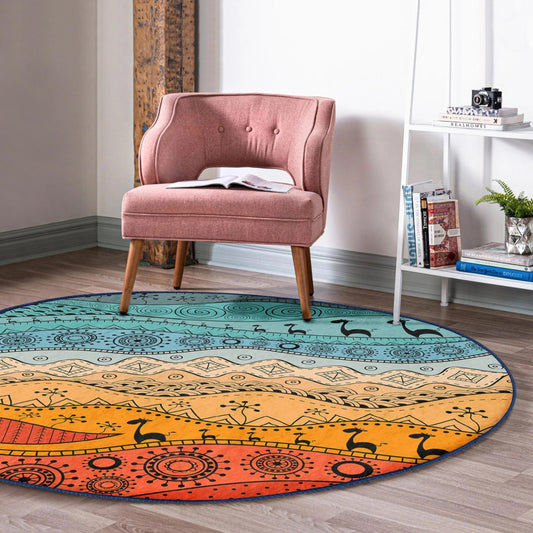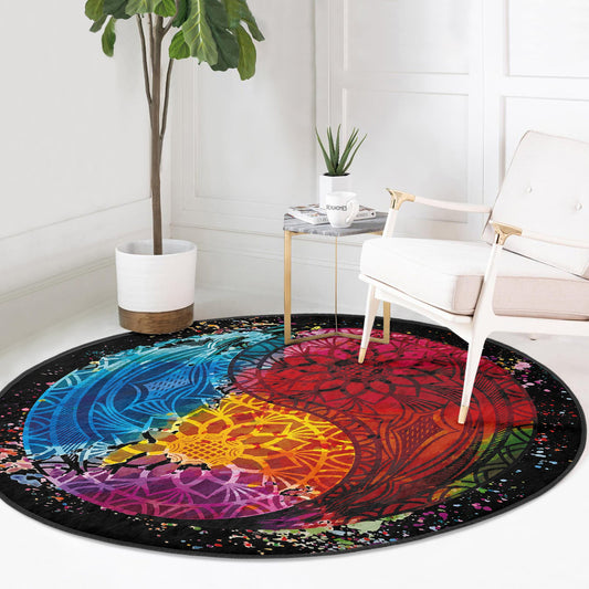 Mystic Round Rug, Decorative Colorful Floor Carpet, Non Slip Circle