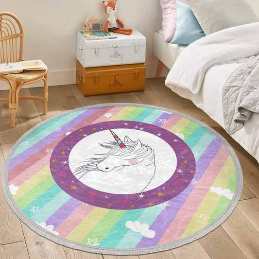 Rainbow Unicorn Kids Room Area Rug, Unicorn Patterned Nursery Carpet,