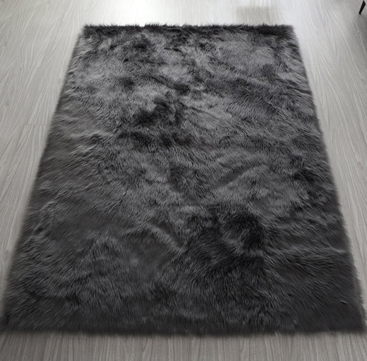 Cozy Ultra Soft Fluffy Faux Fur Grey Area Rug