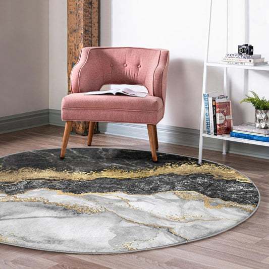 Marble Patterned Round Rug, Marble Design Decorative Circle Carpet,