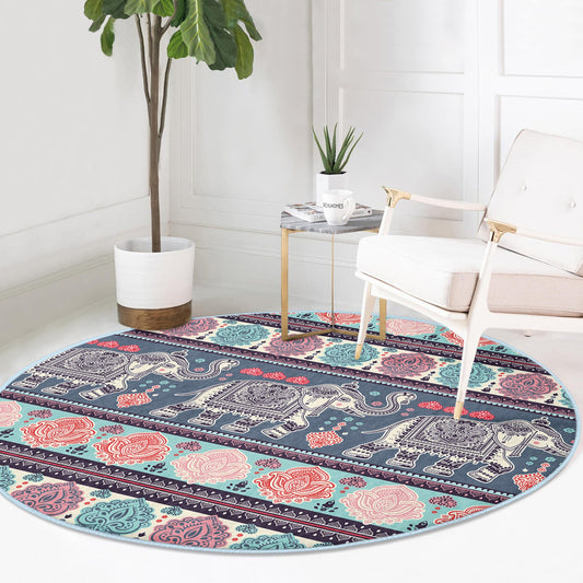 Elephant Patterned Round Rug, Meditation Room decoration Circle