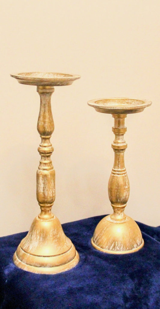 Elegant Aluminium Pillar Candle Holders - Set of 2